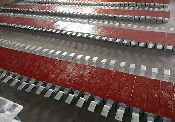 我公司按照GB/T 4948-2002研發(fā)生產(chǎn)的鋁合金犧牲陽極(簡(jiǎn)稱:鋁陽極)適于海水介質(zhì)中的船舶、機(jī)械設(shè)備、壓載水艙、儲(chǔ)罐內(nèi)壁、濱海設(shè)施、海底管道、碼頭鋼樁、海洋平臺(tái)、電纜等設(shè)施金屬防腐蝕的陰極保護(hù)。