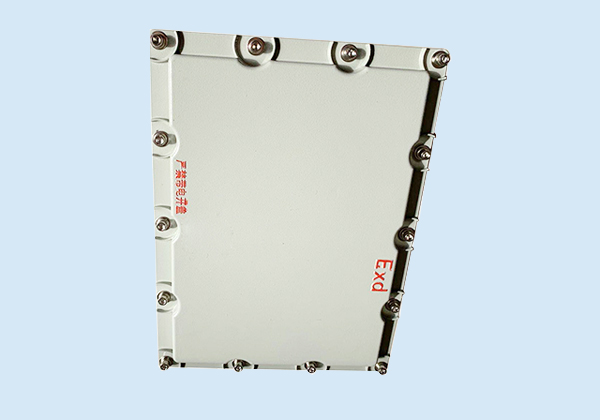 本系列產品外殼采用AL102鑄成,表面噴塑,外形美觀。結合面采用曲路密封結構,具有較強的防水、防塵性能。殼內裝有接線端子,側面設有進、出線口,電纜通過其引入裝置引入箱內與接線端子連接,電纜布線和鋼管布線均可,殼內外均設有接地螺釘。